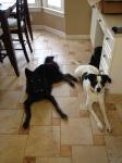 Puma met Moby today and they have been hanging out. Moby does not want to play with other dogs but is fine to hang out with them. Puma is learning that not all dogs are her play toys and she needs to give space to those that don’t want to play with her. Moby is quite a calming presence and is teaching Puma that it’s good to just chill out. We also practiced her obedience commands with Moby as a distraction. She did great and almost forgot he was there!