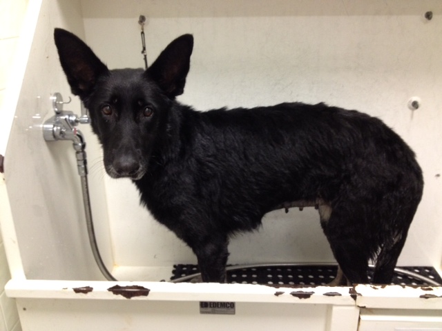 Lexus has been with us a little more than 24 hours and is settling well. She loves the security of her crate right now. She’s watching life go by and taking it all in from a distance. Doing great with going potty in the right spot and is eating regularly! She’s alsp getting to know what a “walk” is like on leash with a human. So far so good… Baby steps. 🙂